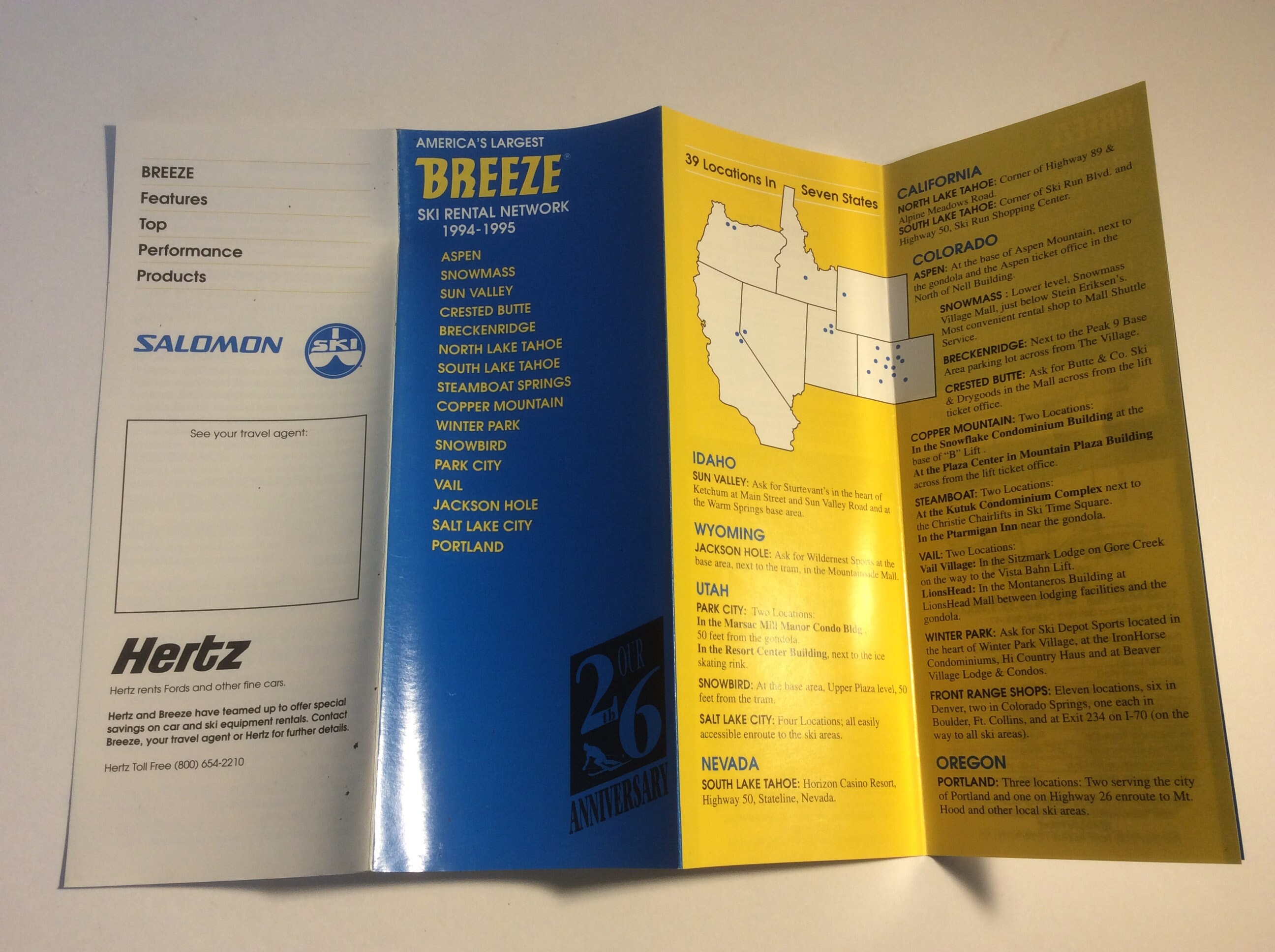 Vintage 94 95 Breeze Ski Rental Network Tourist Brochure With Etsy